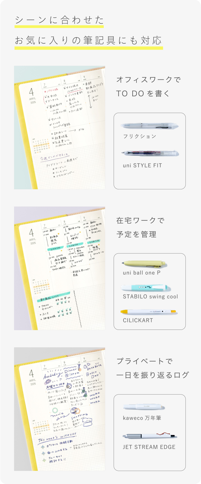 を体現するため、SUNNY手帳はさらに様々な筆記具に対応する必要がありました。