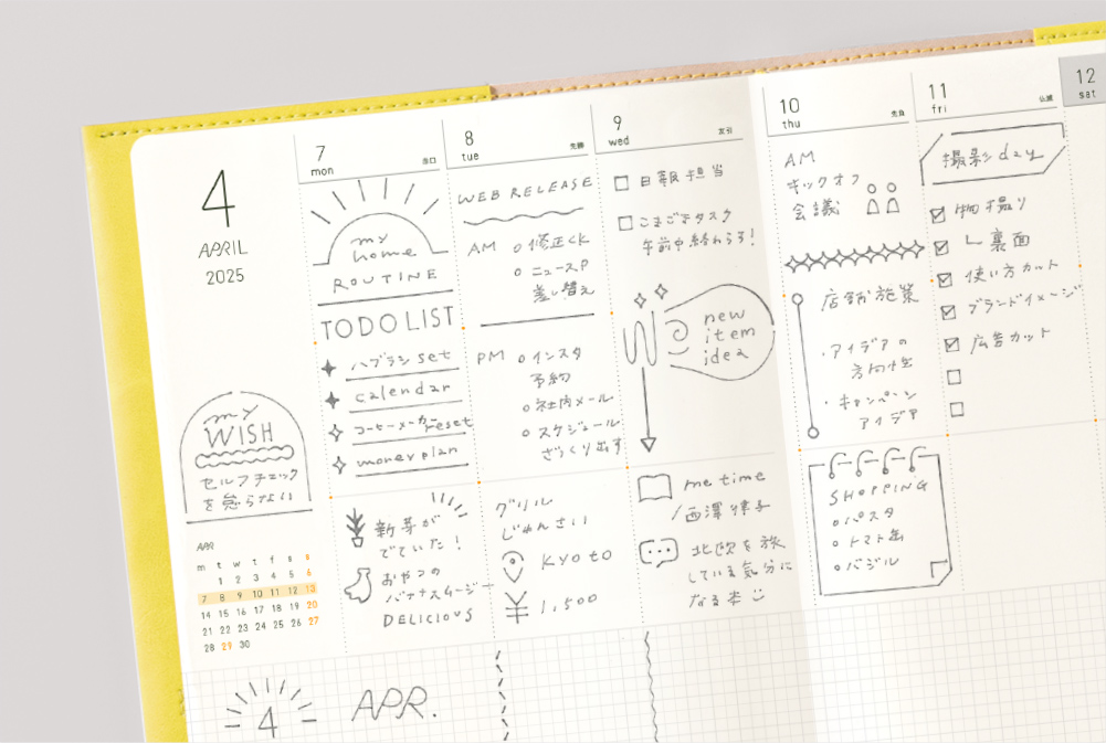 もちろん、手帳本体の厚みや重さは変わらず、SUNNY手帳の特徴でもある「大容量ノート」もページを減らすことなく、書きたいことを、気軽に書き出せる、自由な使い心地はそのままです。