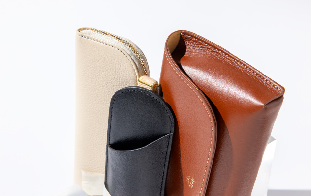 表情豊かなカウレザーを厳選し、毎日のスタイルに馴染みやすいカラーで仕立てました。 ベジタルタンニンなめし※1で自然な風合いを残し、シボが刻まれたカウレザーは、使い込むほどに豊かな表情が楽しめます。