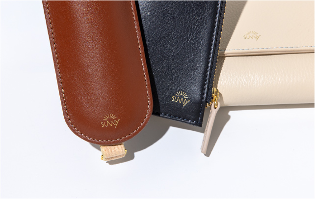 本体に施した箔押し、ファスナーには優しく光るゴールドを。さりげなく、上品なアクセントです。