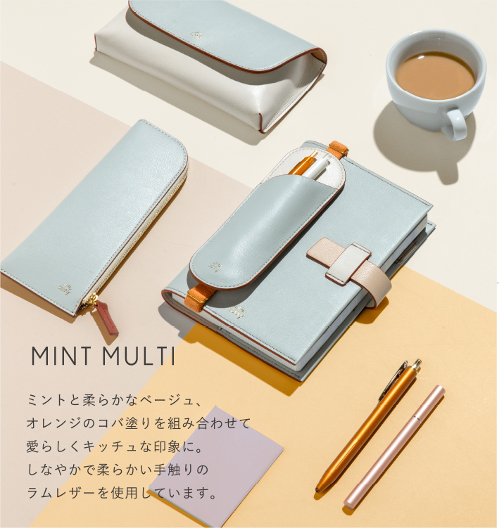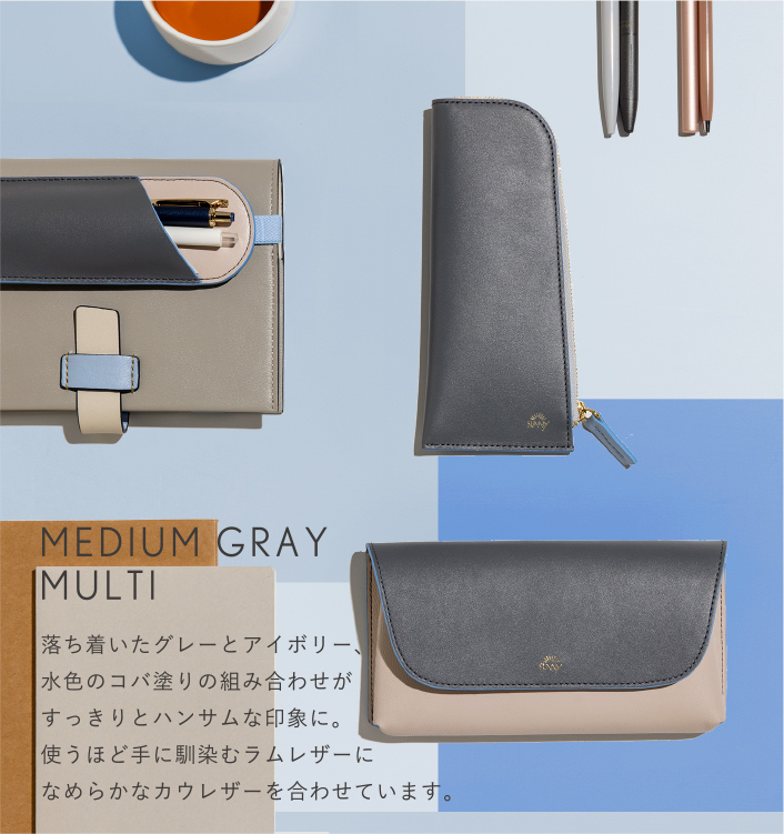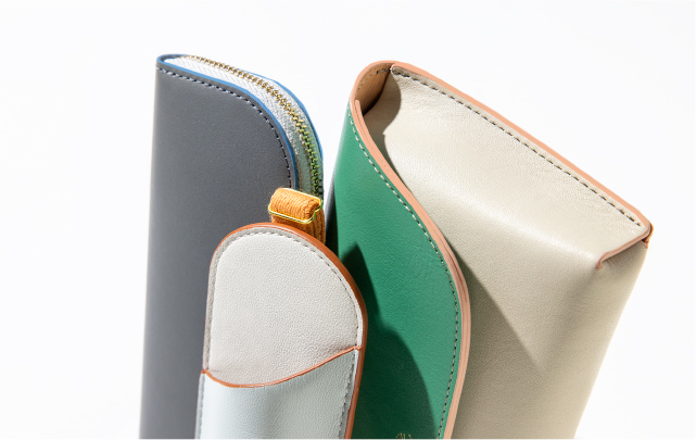 カウレザーとラムレザー、本革ならではの風合いや質感に加え、新鮮なカラーリングが目を惹くデザイン。上質な本革は使うほどに手に馴染み、自分にぴったりのアイテムに。