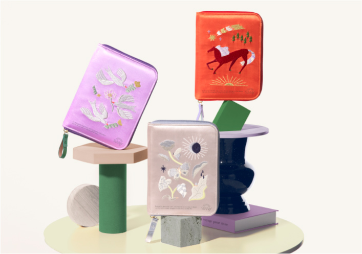 マルチな配色感に個性が光るレザーフラップカバー。上質さもありながら、少しエッジの効いたデザインで、新しい1年も、その先も、彩り豊かに。