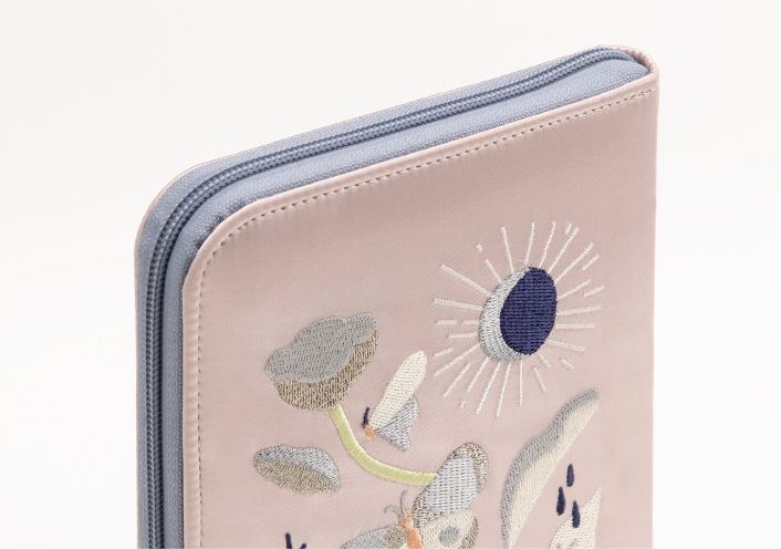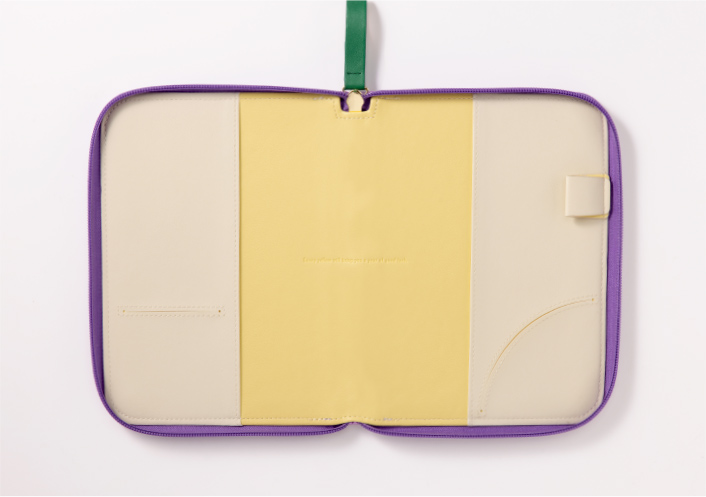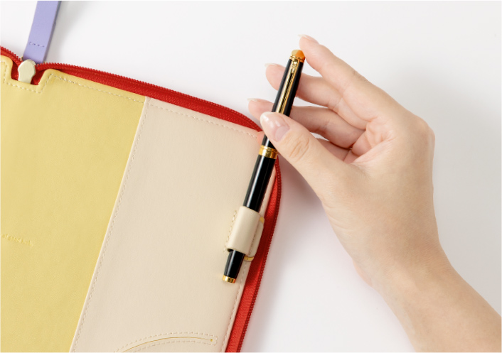 開閉がスムーズになるよう角に丸みをつくりジッパーの動きをなめらかに。書きたいときに、すぐに手帳へアクセスできます。