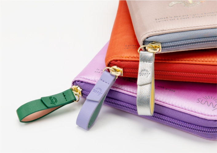 ナチュラルレザーと紐留めのデザインで上品な仕上がりに。使うほど手に馴染み、毎日に寄り添います。丁寧に豊かに積み重ねる毎日をSUNNYと。