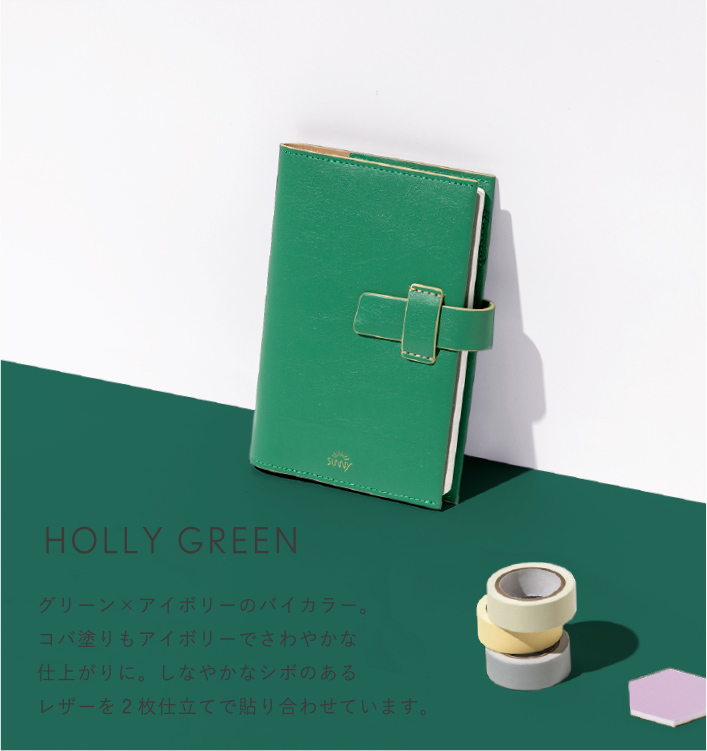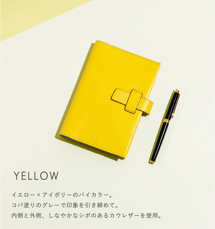 毎日の使い心地にこだわったスタンダードカバー。手触りが良く、ゴムバンドにはペンを挟めます。SUNNYらしい6色からあなたの色を選んで。