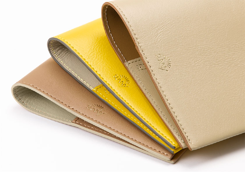 SUNNYのロゴにはカウレザーを引き立てる、ゴールドの箔押しを。