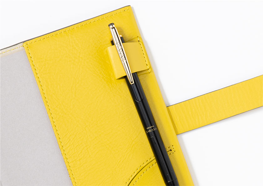 カバー内側のペンホルダーは、斜めにカットが入ったSUNNY独自の形状で、ペンの抜き差しがスムーズです。