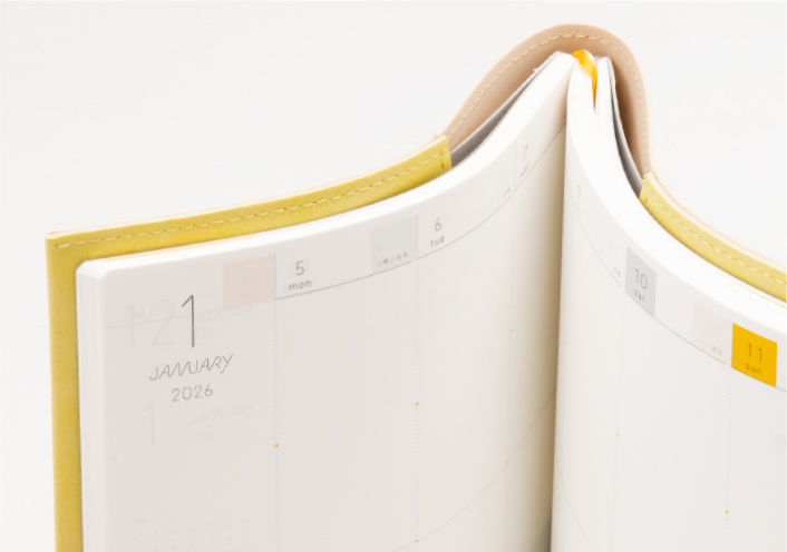マルチな配色感に個性が光るレザーフラップカバー。上質さもありながら、少しエッジの効いたデザインで、新しい1年も、その先も、彩り豊かに。