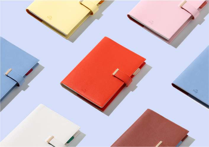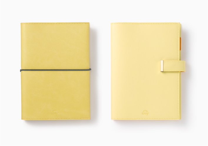 毎日の使い心地にこだわったスタンダードカバー。手触りが良く、ゴムバンドにはペンを挟めます。SUNNYらしい6色からあなたの色を選んで。
