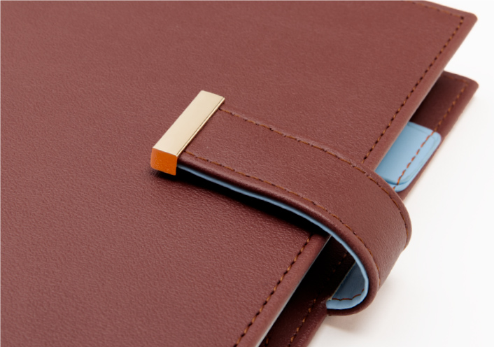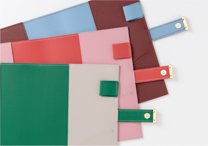 フォーマルさと遊び心の両方を楽しめるフラップカバー。レザーを貼り合わせ、丈夫で飽きのこないデザインに。新しい1年も、その先も一緒に。
