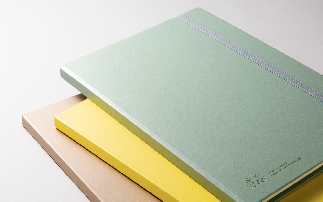 ロゴはサワーゴールドの箔押しで、表紙の風合いを引き立てます。